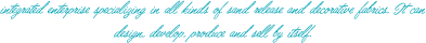 從事各類沙發(fā)布、裝飾布的工貿(mào)一體化企業(yè),可自行設(shè)計(jì)、開(kāi)發(fā)、生產(chǎn)、銷售。